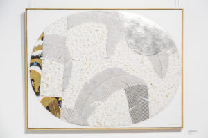 Kazuo Wakabayashi, Pássaro na folha de bananeira, 2017 – Técnica mista sobre tela 100 x 130 cm